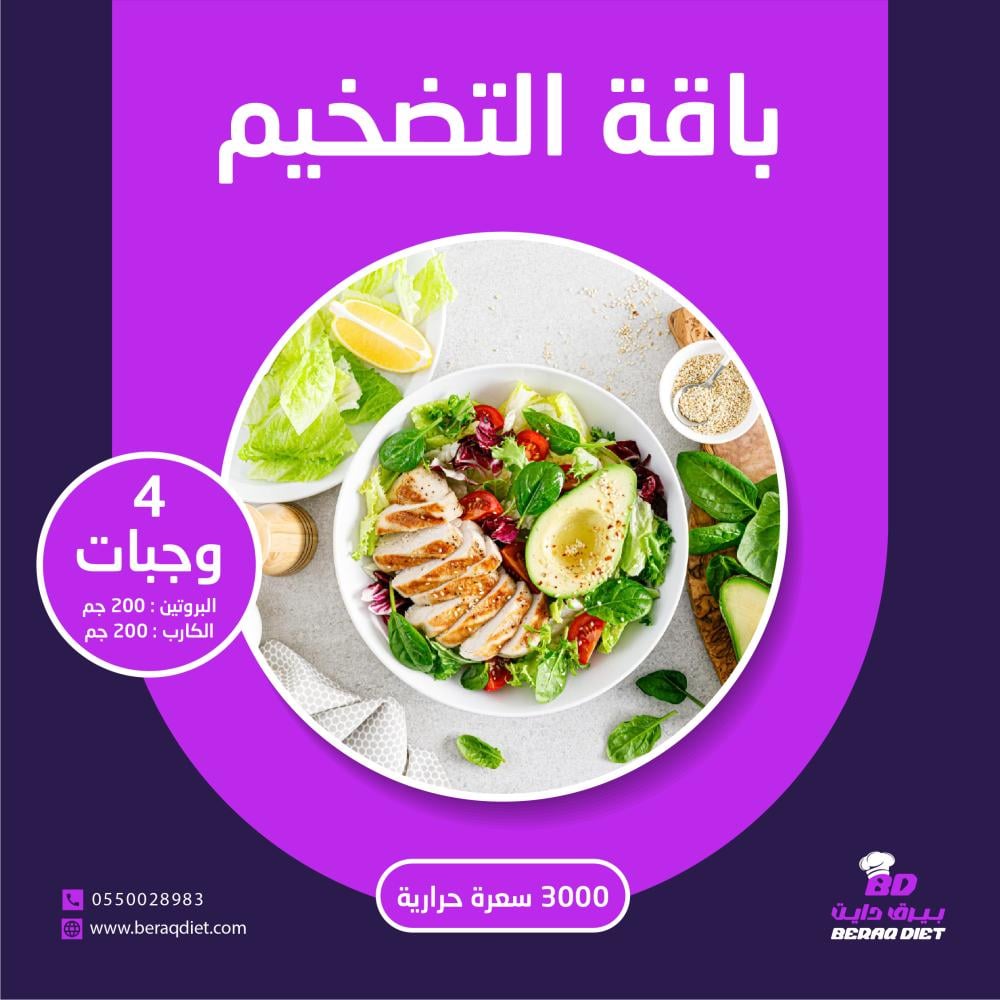 لو هدفك تبني عضلات وتزيد من كتلتك بطريقة صحية، فـ باقة التضخيم بتكون رفيقك. وجبات غنية بالسعرات والجودة الغذائية، موزونة بين البروتينات والكربوهيدر...